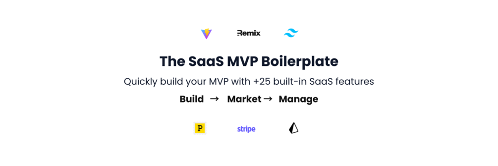 Rock-solid Remix boilerplate to build your MVP with +25 built-in SaaS features: Auth, Admin portal, App dashboard, Stripe Subscriptions, Workflows, Blog, Knowledge Base, Entity Builder (auto-generated CRUD and API), Events, Email Marketing, Page Blocks, Notifications, Onboarding, Feature Flags, and more.
